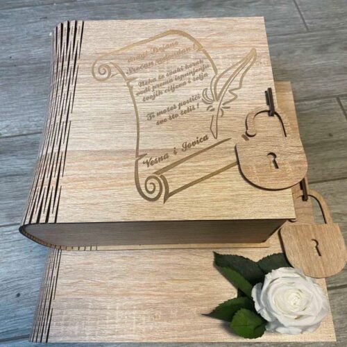 Jedinstvena i elegantna kutija u formi knjige – savršen način da poklonite sitnice, novac ili simbolične poklone sa stilom. Izrađena je od kvalitetnog materijala , sa pažljivo urađenim detaljima koji ostavljaju utisak luksuza i originalnosti.