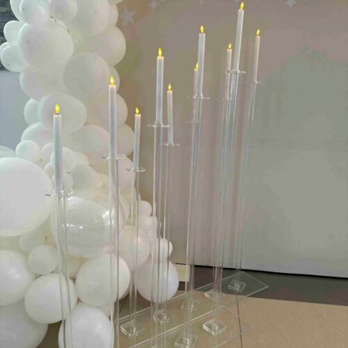 Elegantni svećnjaci sa LED svećama donose toplinu i romantičnu atmosferu bez plamena i dima – idealni za proslave, venčanja , restorane ili dekoraciju doma . Dostupni su u dve veličine -veći sa 5 LED sveća i manji sa 3 LED sveća, a mogu se kupiti ili iznajmiti prema Vašim potrebama .