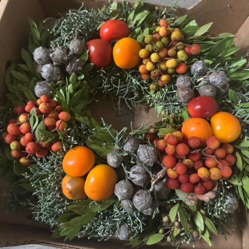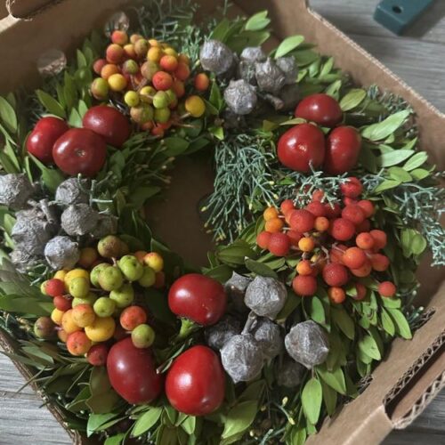 Ukrasni jesenji venčić, od prirodnog cveća i plodova.